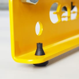 I piedini in gomma del nostro dispositivo roll-off non sono incollati, ma fissati meccanicamente. Questo assicura una presa salda in ogni momento, anche su pavimenti industriali scivolosi.